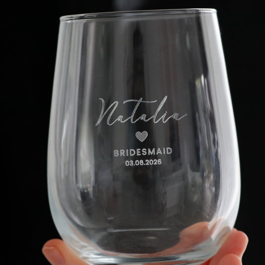 Engraved Bridesmaid Stemless Glass