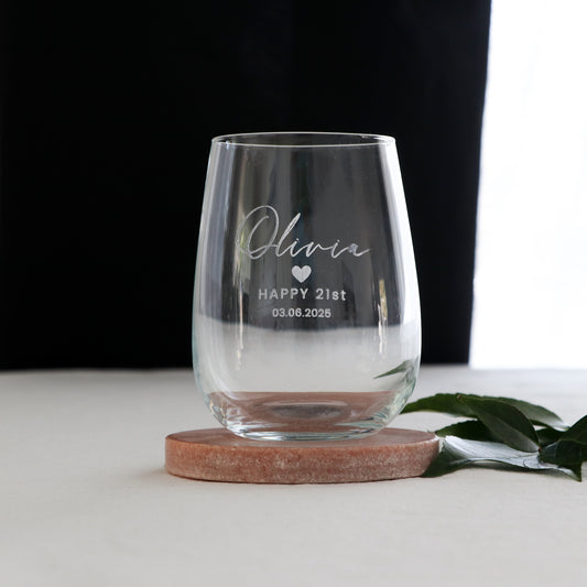 Engraved Birthday Stemless Wine Glass
